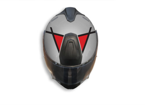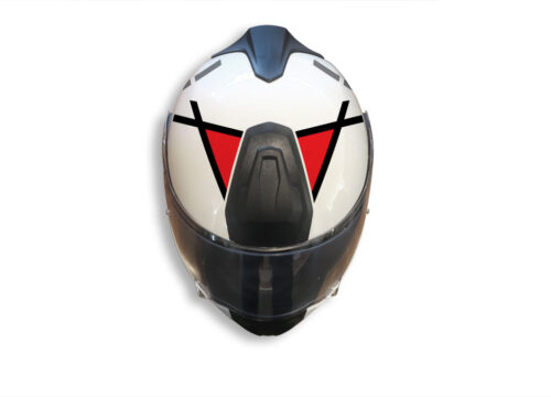 BMW System 7 Helmet (White) The Globe Series Silver & Red Stickers