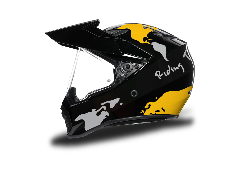 Signature Custom Designs THE GLOBE Series styling kit, gives to your AGV AX-9 Helmet a unique and adventure character.
