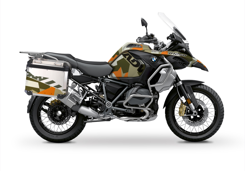 BMW Aluminum Side Panniers M90 OrangeCamo Stickers