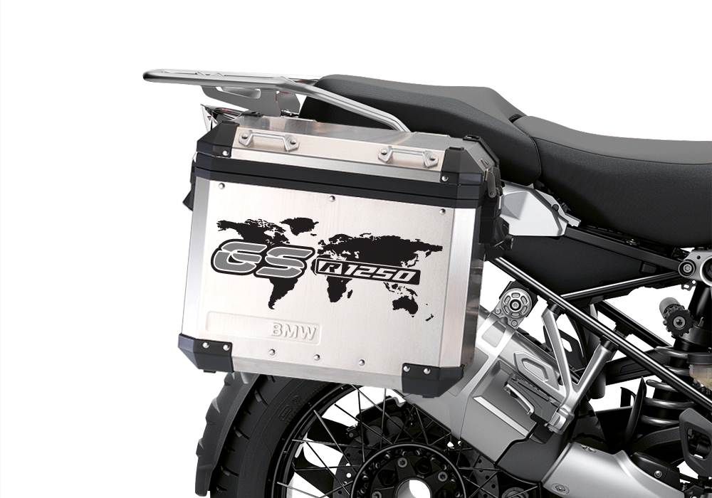 BMW Aluminum Side Panniers The Globe GS R1250 Black & Silver Stickers