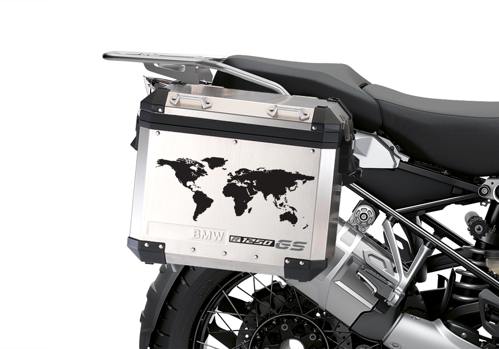 BMW Aluminum Side Panniers The Globe R1250GS Black & Silver Stickers