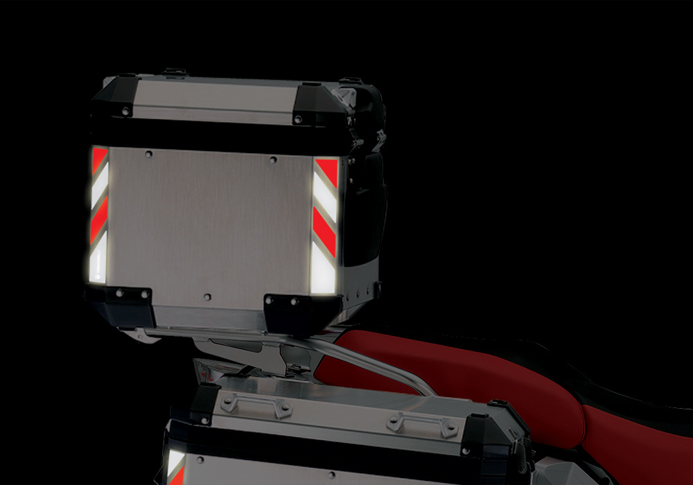 Signature Custom Designs reflective Stripes, gives to your BMW Aluminum Top Box visibility during the night.