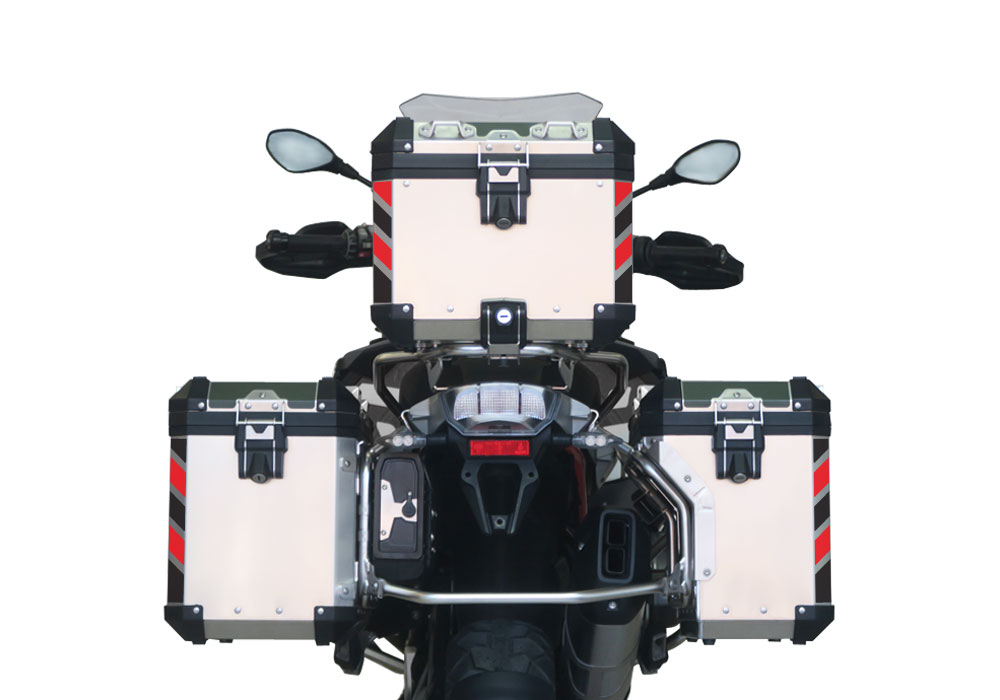 BMW Aluminum Top Box Black & Red Reflective Stripes