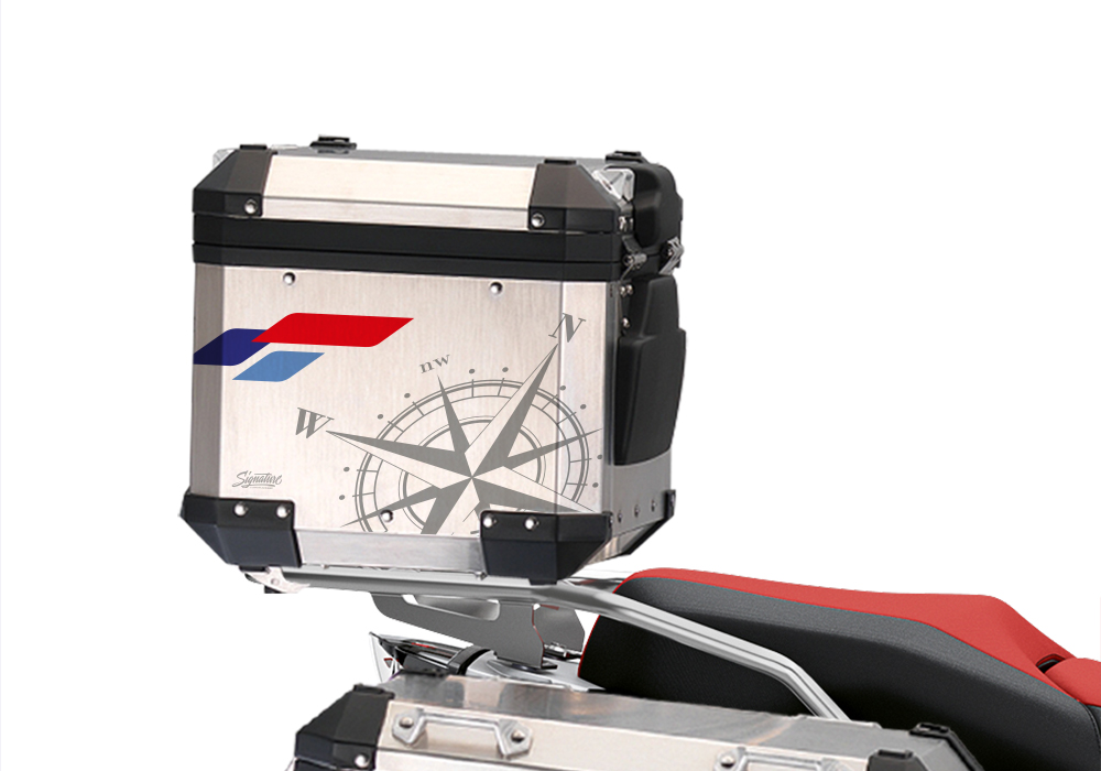Signature Custom Designs COMPASS V2 styling kit gives your BMW Aluminum Top Box a unique and adventurous character.
