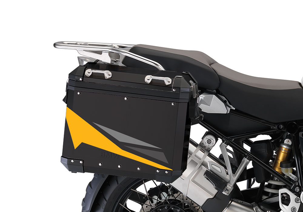 BMW Black Aluminum Side Panniers Alive Yellow & Grey Stickers