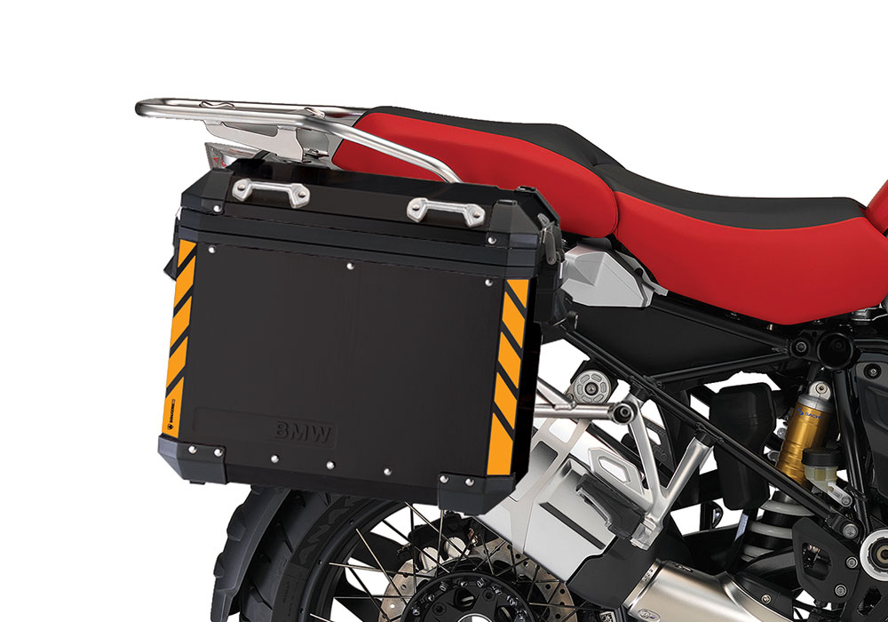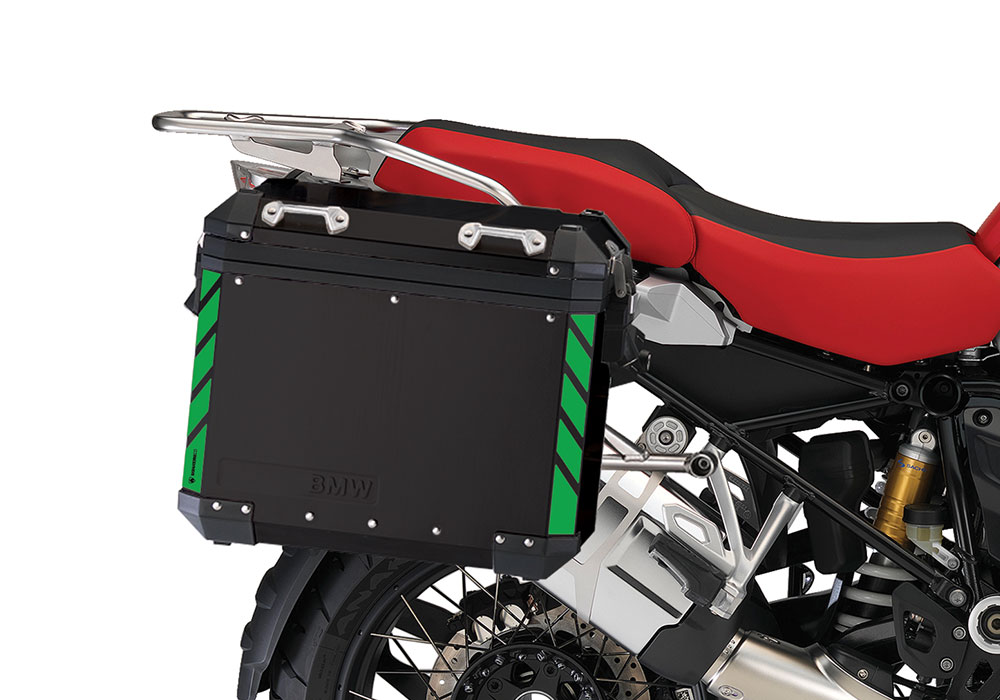 BMW Black Aluminum Side Panniers One Color Reflective Stripes