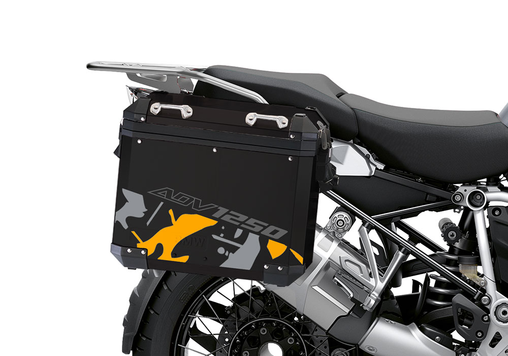 BMW Black Aluminum Side Panniers Safari Grey & Yellow Stickers
