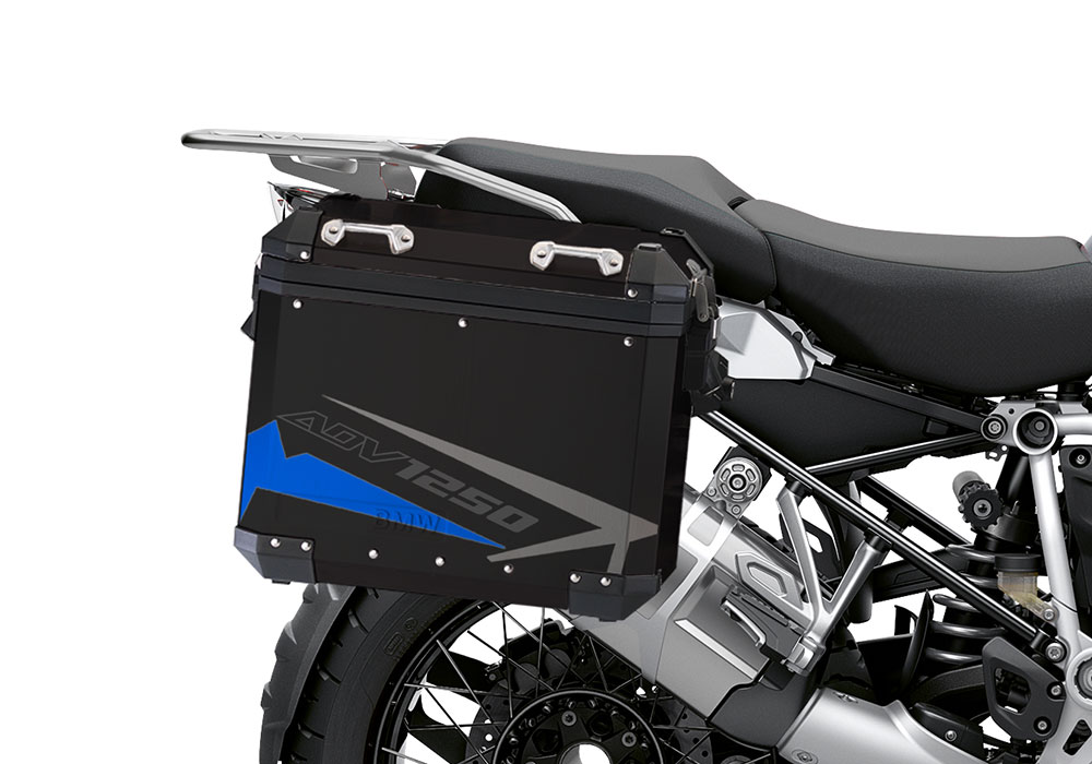 BMW Black Aluminum Side Panniers Spike Grey & Blue Stickers