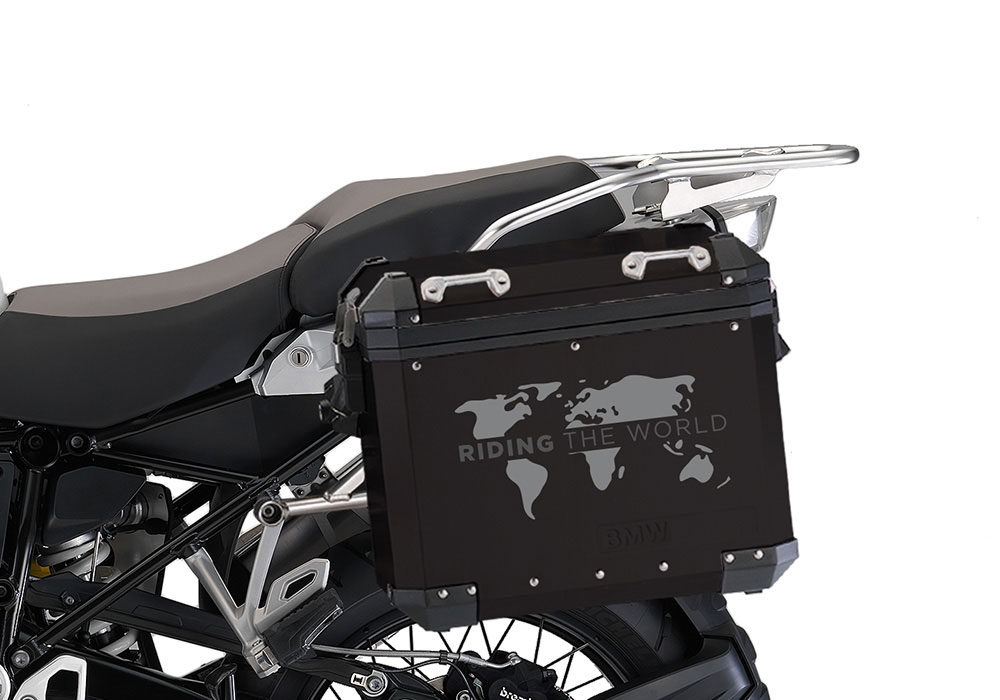 BMW Black Aluminum Side Panniers The Globe Grey & Silver Stickers