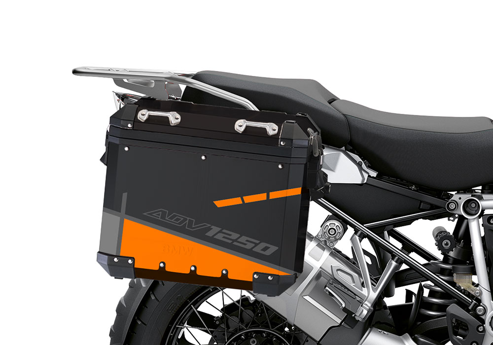 BMW Black Aluminum Side Panniers Vector Orange & Grey Stickers