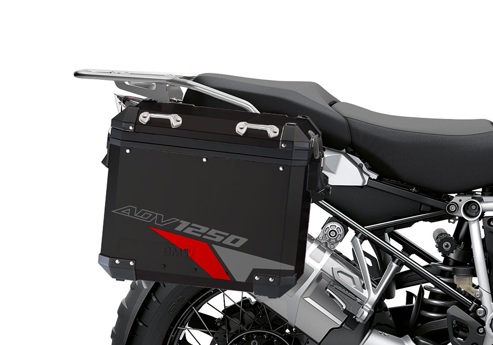 BMW Black Aluminum Side Panniers Velos Red & Grey Stickers