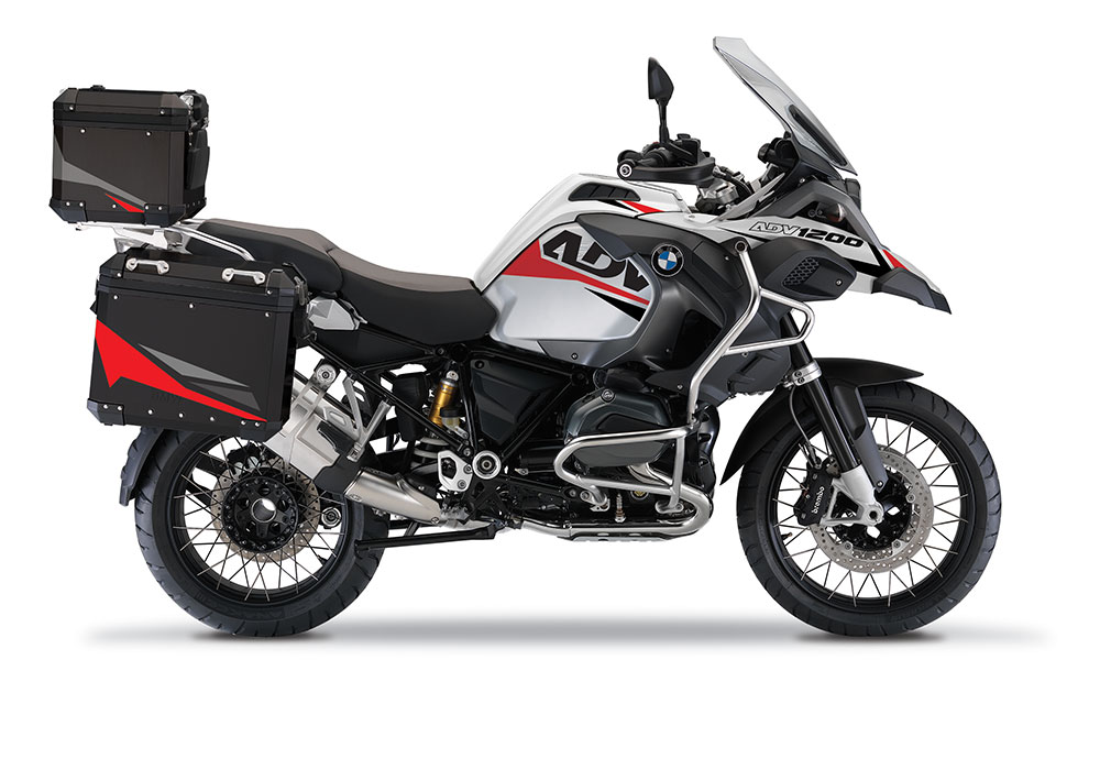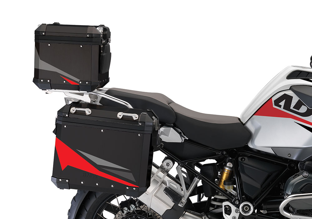 BMW Black Aluminum Top Box Alive Silver & Red Stickers