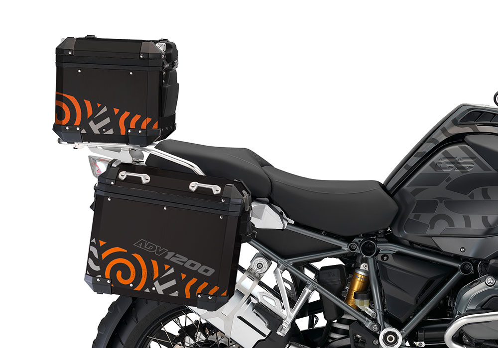 Signature Custom Designs FOUR ELEMENTS Series styling kit gives your BMW Black Aluminum Top Box a unique and adventure character.