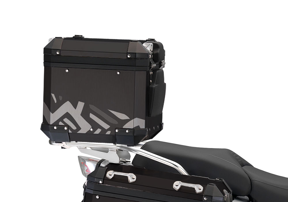 Signature Custom Designs MASSAI Series styling kit gives your BMW Black Aluminum Top Box a unique and adventure character.