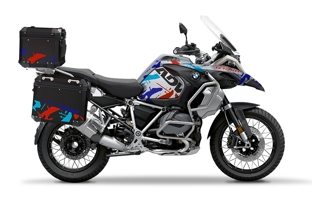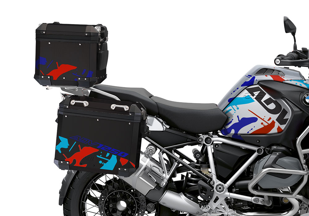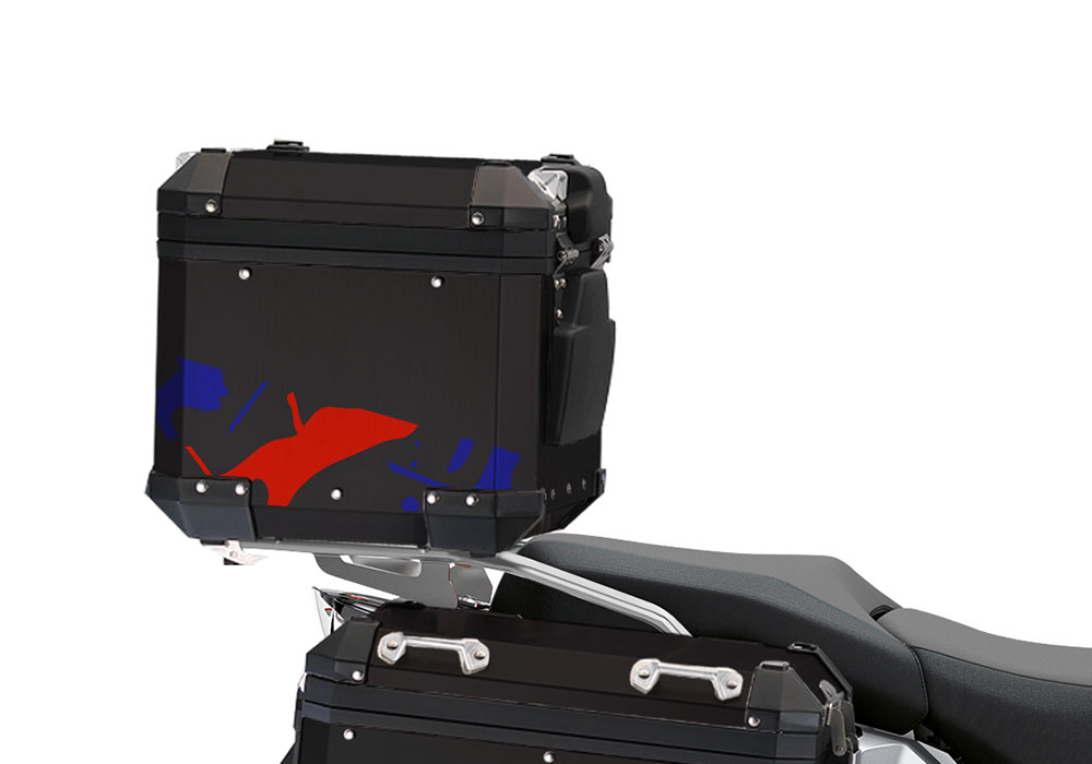BMW Black Aluminum Top Box Safari Red & Blue Stickers