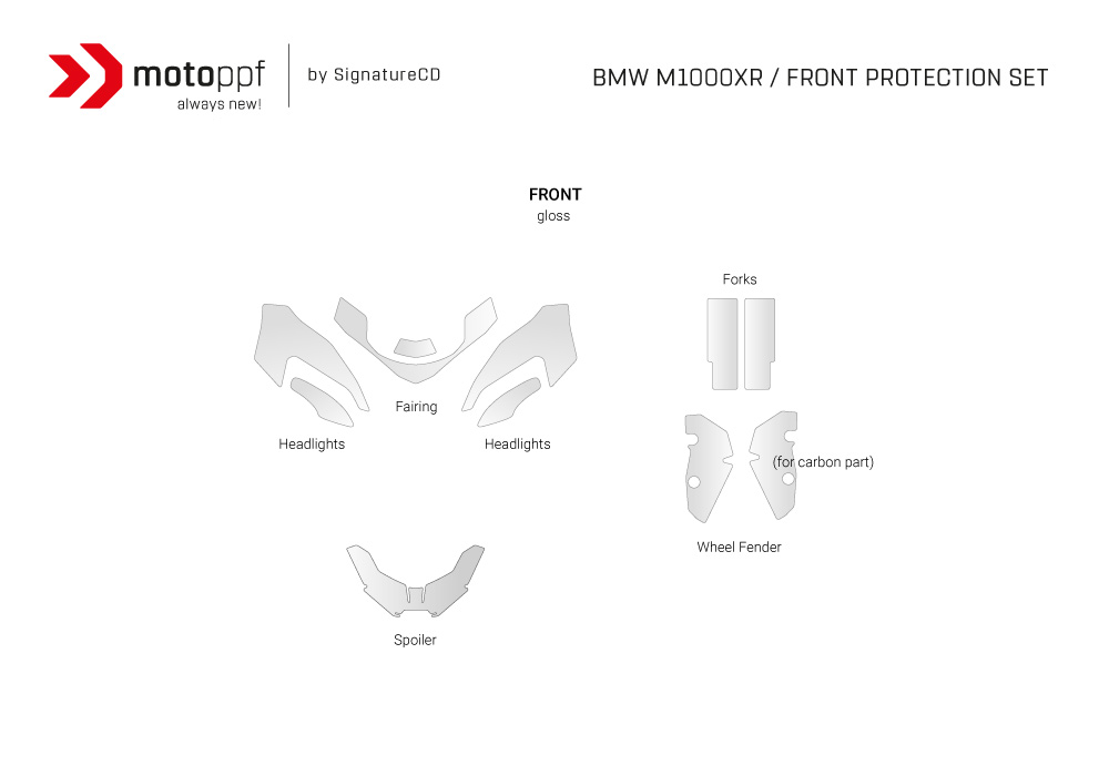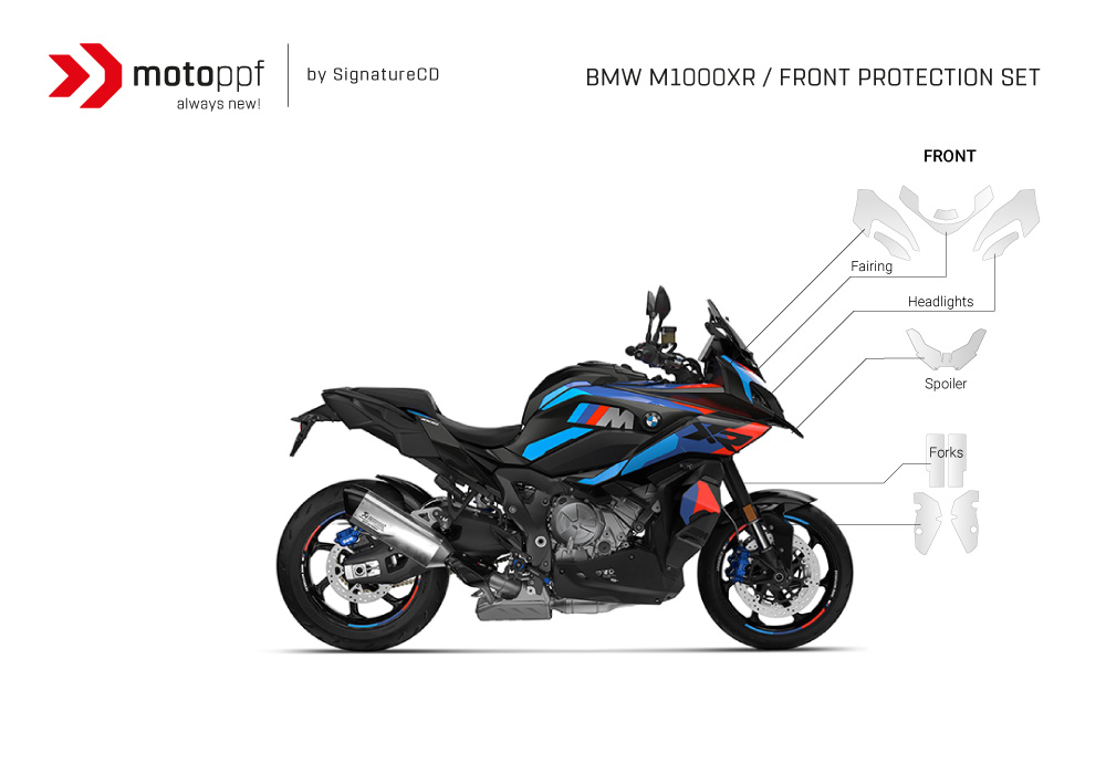 The MOTOPPF “Front Set,” by SignatureCD, is specifically designed to offer comprehensive motorcycle paint protection: Our Paint Protective Film (PPF) sets come in gloss Invisible finish to perfectly match your bike’s original look.