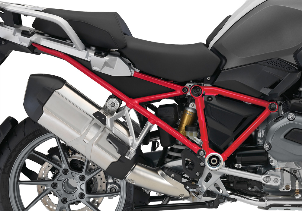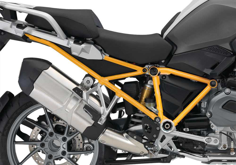 Signature Custom Designs Revolutionary and Innovative GS Frame Styling Kit, changes the color of your BMW R1200GS LC frame giving a powder coating effect, without affecting the original color by using ready to fit sticker kit.