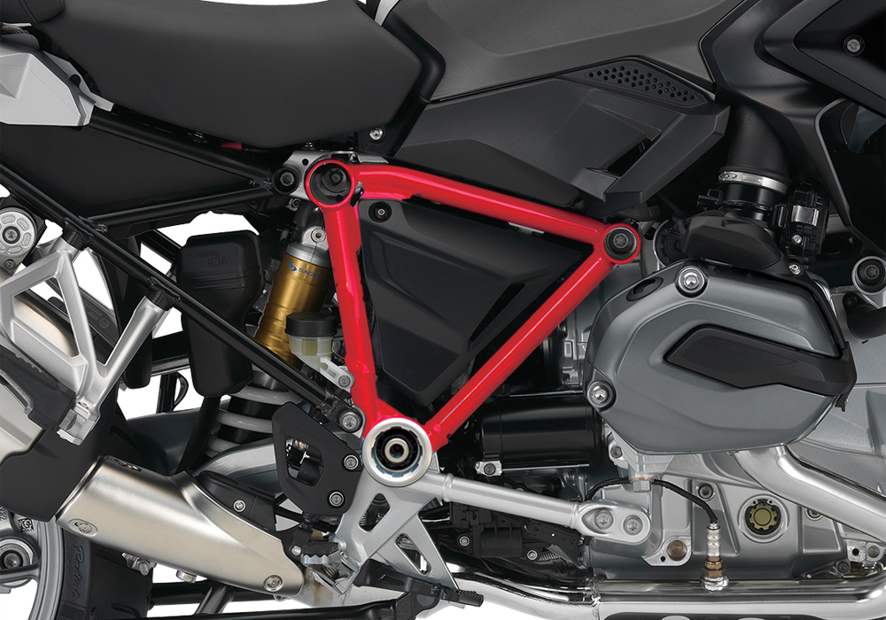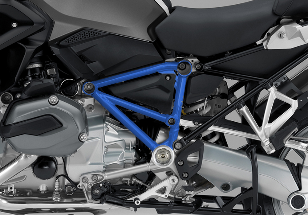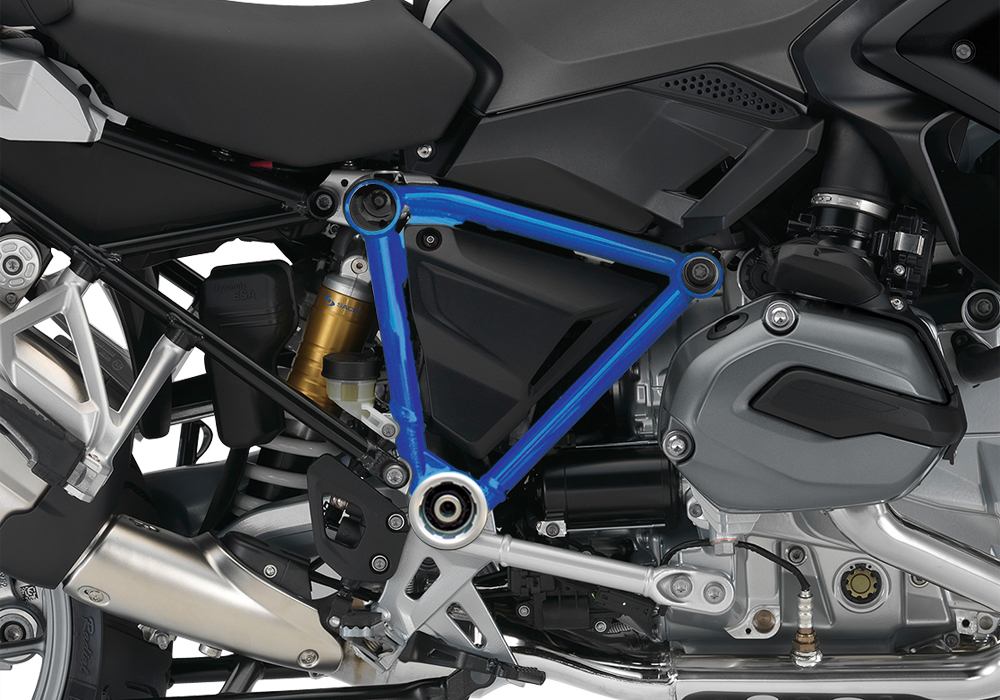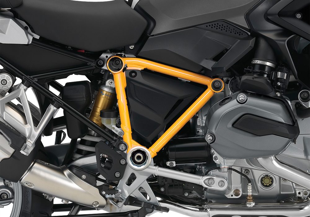 Signature Custom Designs Revolutionary and Innovative Pyramid Frame Styling Kit, changes the color of your BMW R1200GS LC frame giving a powder coating effect, without affecting the original color by using ready to fit sticker kit.