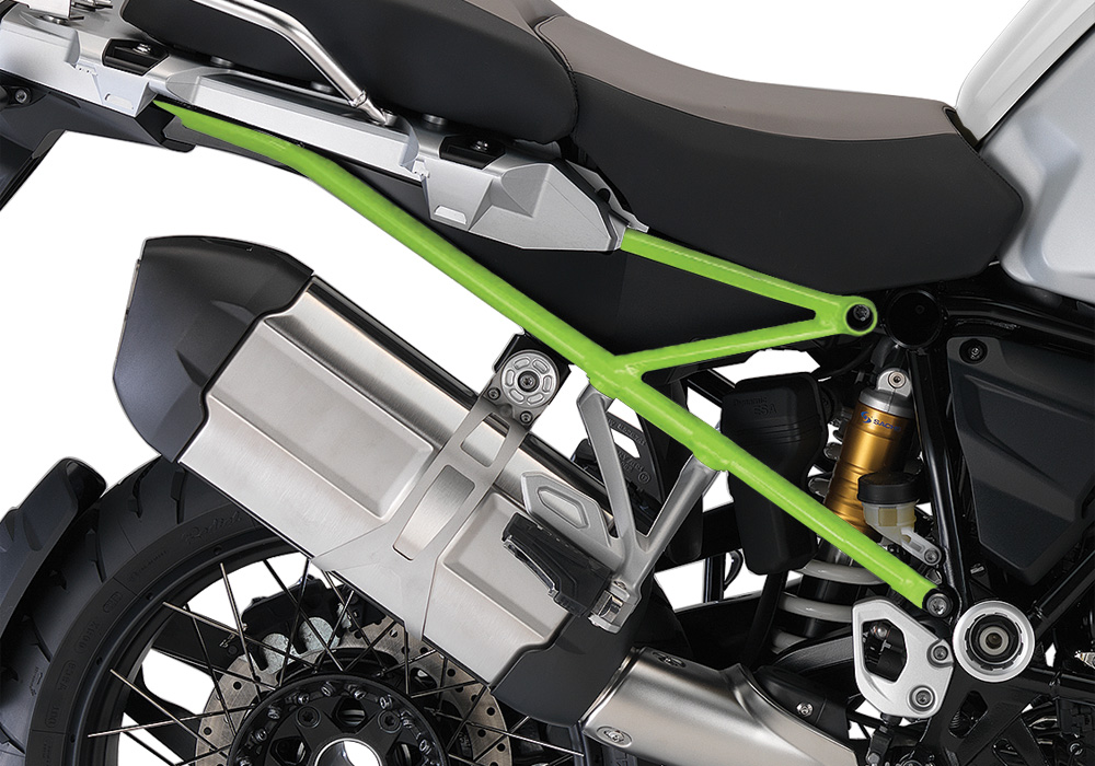 Signature Custom Designs Revolutionary and Innovative SubFrame Styling Kit, changes the color of your BMW R1200GS LC Adventure frame giving a powder coating effect, without affecting the original color by using ready to fit sticker kit.