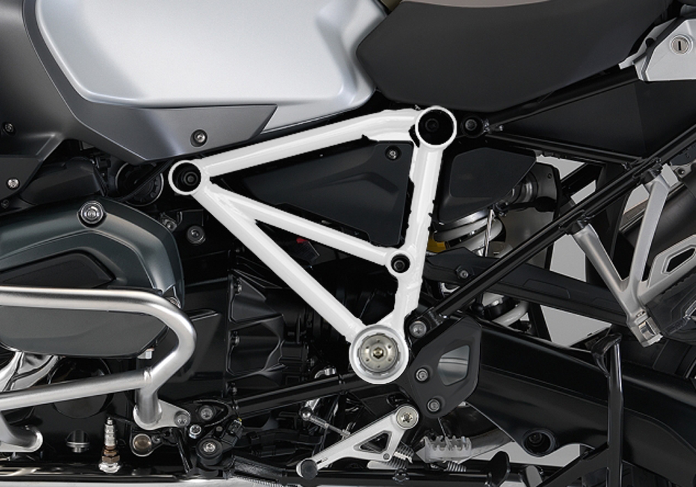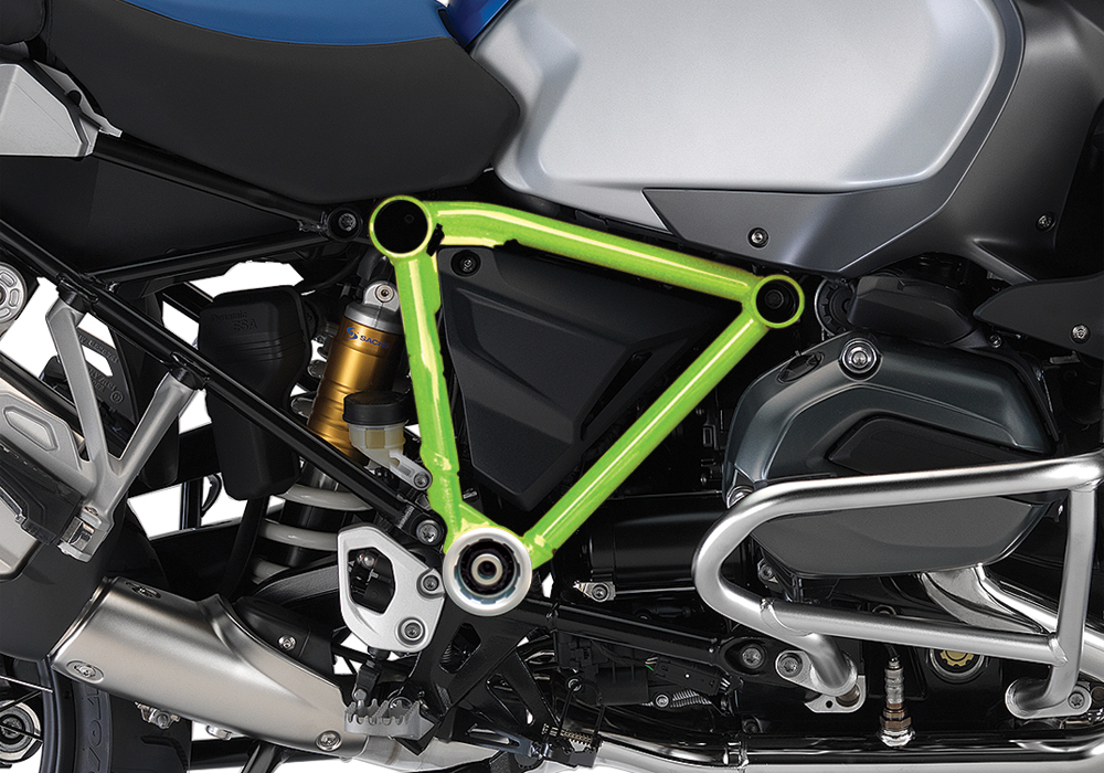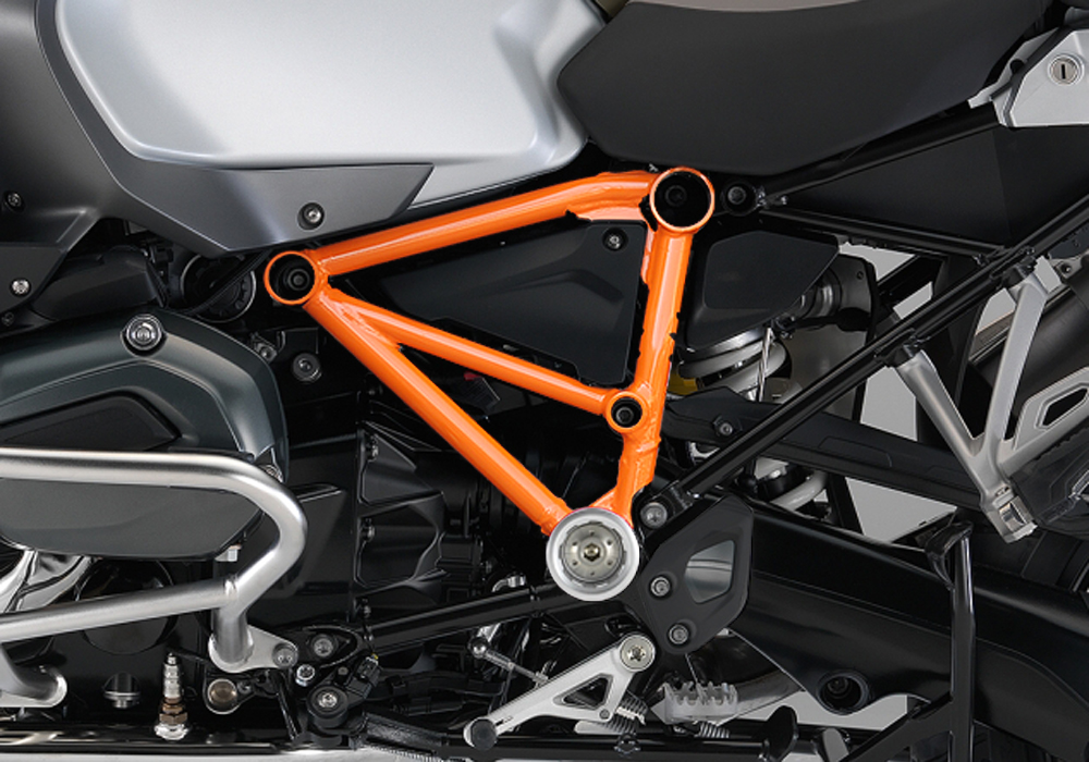 Signature Custom Designs Revolutionary and Innovative Pyramid Frame Styling Kit, changes the color of your BMW R1200GS LC Adventure frame giving a powder coating effect, without affecting the original color by using ready to fit sticker kit.