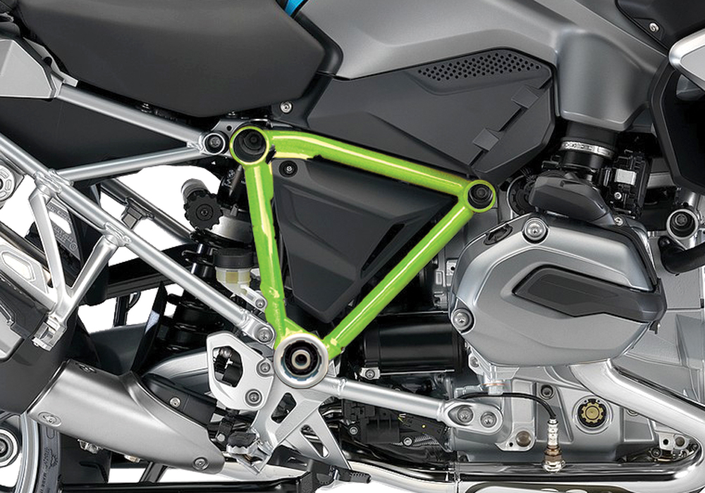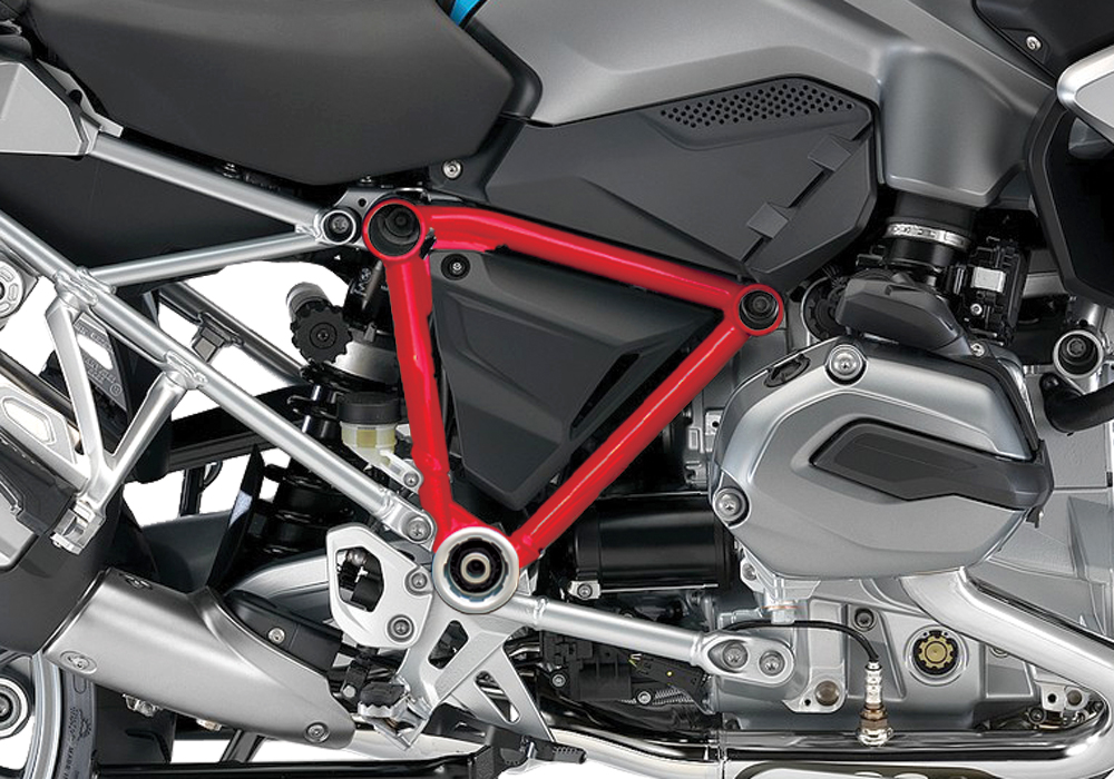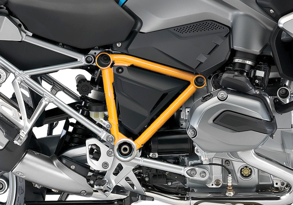 Signature Custom Designs Revolutionary and Innovative Pyramid Frame Styling Kit, changes the color of your BMW R1200GS LC frame giving a powder coating effect, without affecting the original color by using ready to fit sticker kit.