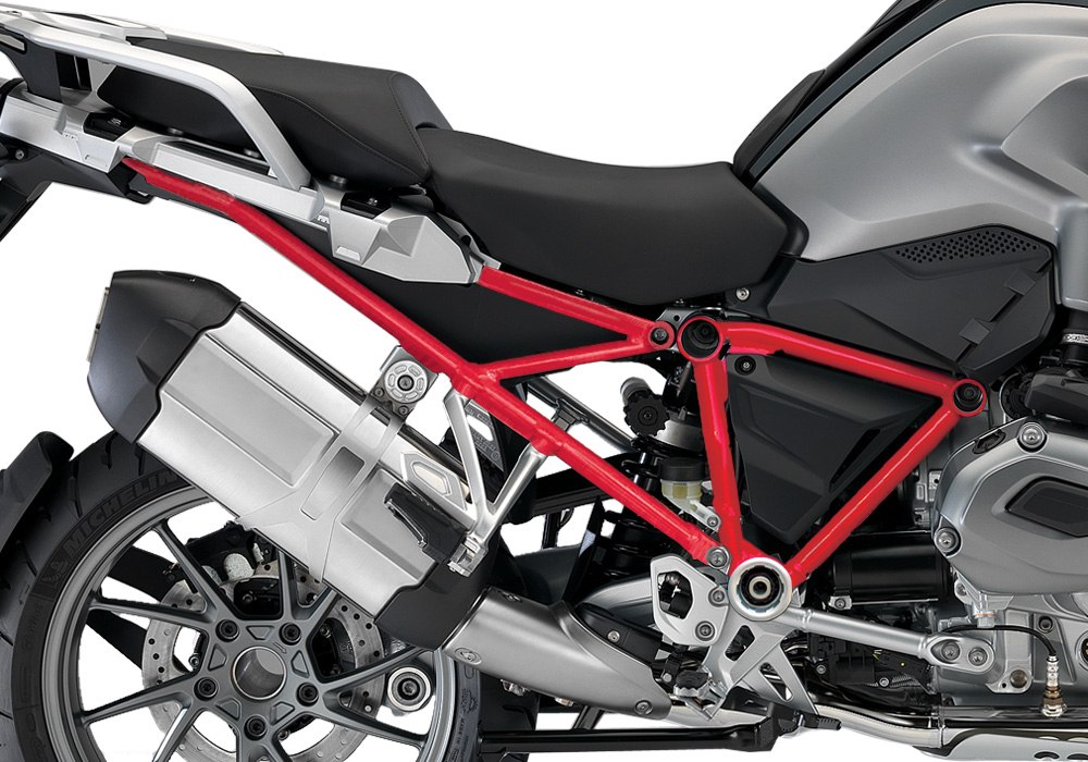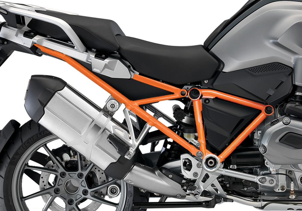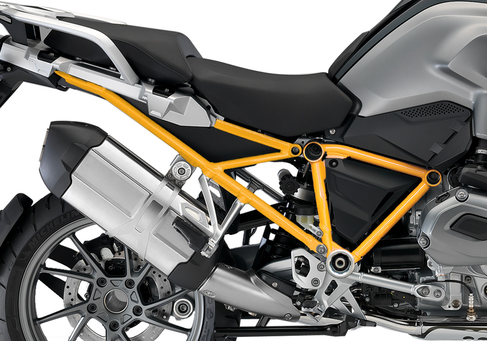 Signature Custom Designs Revolutionary and Innovative GS Frame Styling Kit, changes the color of your BMW R1200GS LC frame giving a powder coating effect, without affecting the original color by using ready to fit sticker kit.
