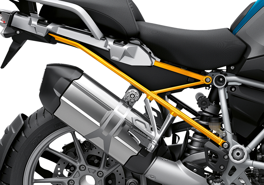 Signature Custom Designs Revolutionary and Innovative GS Frame Styling Kit, changes the color of your BMW R1250GS Subframe giving a powder coating effect, without affecting the original color by using ready to fit sticker kit.