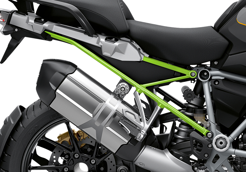 Signature Custom Designs Revolutionary and Innovative GS Frame Styling Kit, changes the color of your BMW R1250GS Subframe giving a powder coating effect, without affecting the original color by using ready to fit sticker kit.