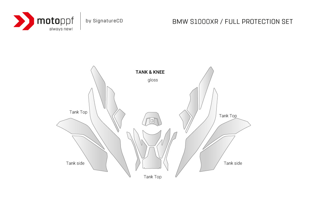 The MOTOPPF “Tank and Knee Set,” by SignatureCD, is specifically designed to offer comprehensive motorcycle paint protection: Our Paint Protective Film (PPF) sets come in gloss and matte finishes to perfectly match your bike’s original look.