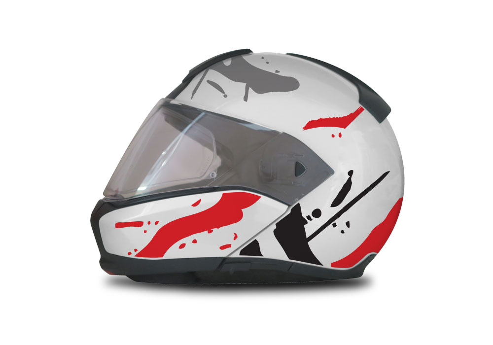BMW System 6 Helmet (Silver) Safari Red & Black Stickers Kit