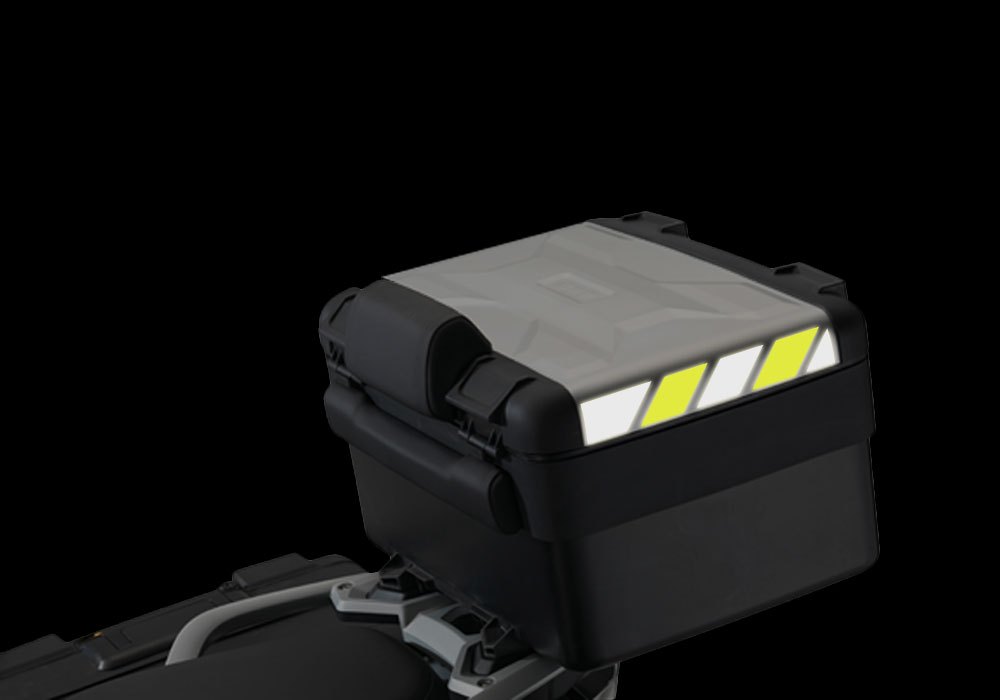 Signature Custom Designs reflective Stripes, gives to your BMW Vario Top Box visibility during the night.