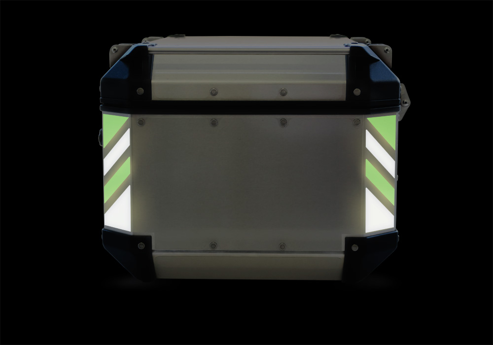 Signature Custom Designs reflective Stripes, gives to your GIVI Trekker Outback Top Box visibility during the night.