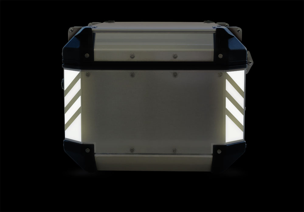 Signature Custom Designs reflective Stripes, gives to your GIVI Trekker Outback Top Box visibility during the night.