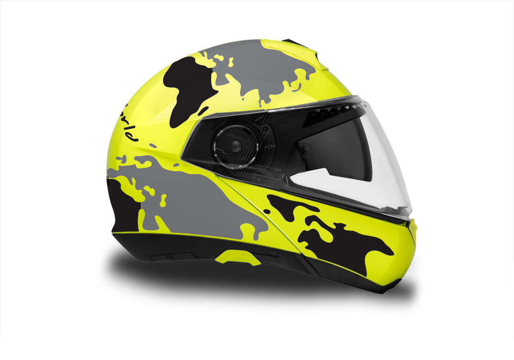 Signature Custom Designs THE GLOBE Series styling kit gives your Schuberth C4 & C4 Pro Helmet a unique and adventure character.
