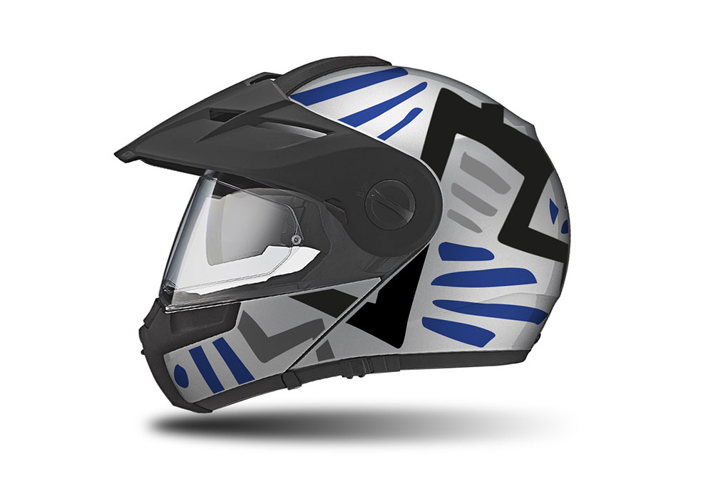 Schuberth E1 Helmet (Silver) Massai Series Blue Black Grey Stickers