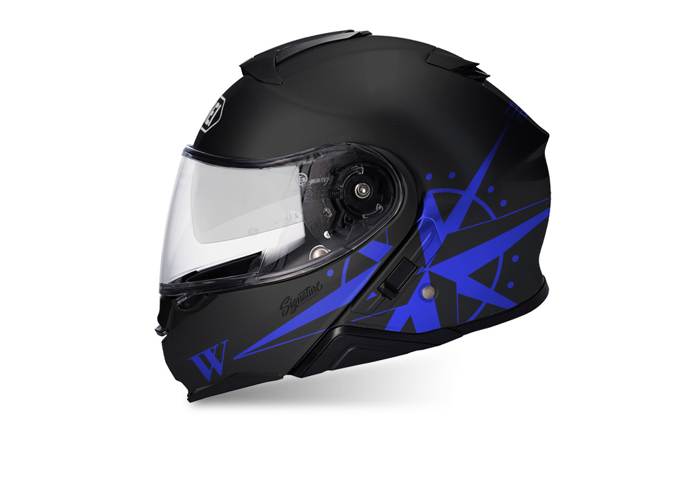 Signature Custom Designs COMPASS Series styling kit, gives to your Shoei Neotec II Helmet a unique and adventure character. Gloss finishing stickers on matte helmet creates the perfect contrasting touch!