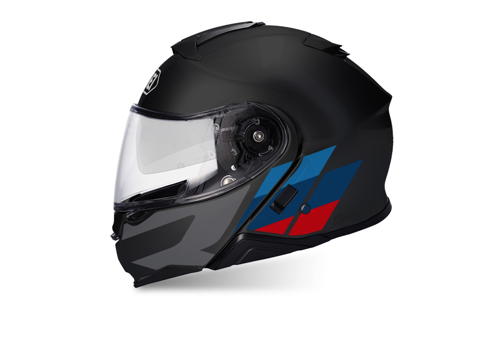 Signature Custom Designs R-LINE Series styling kit, gives to your Shoei Neotec II Helmet a unique and sport character. Gloss finishing stickers on matte helmet creates the perfect contrasting touch!