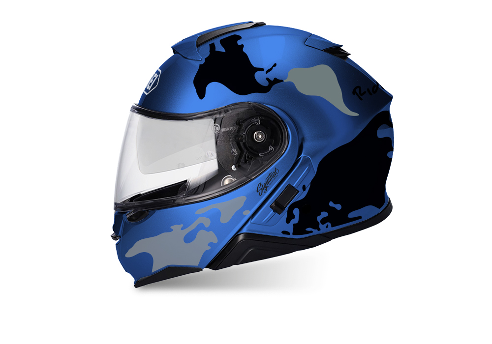 Signature Custom Designs THE GLOBE Series styling kit, gives to your Shoei Neotec II Helmet a unique and adventure character. Gloss finishing stickers on matte helmet creates the perfect contrasting touch!