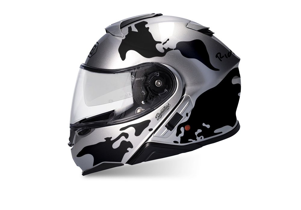 Signature Custom Designs THE GLOBE Series styling kit, gives to your Shoei Neotec II Helmet a unique and adventure character. Gloss finishing stickers on matte helmet creates the perfect contrasting touch!